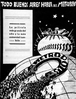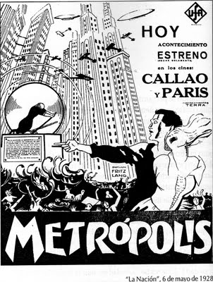Metrópolis se estrenó en Buenos Aires el 6 de mayo de 1928 con anuncios como “Todo Buenos Aires habla de Metrópolis”, “El film que se adelantó un siglo” y “Una película de incalculable trascendencia social”. A pesar de las expectativas, la recepción fue tímida; la crítica especializada local hablaba de un triunfo en lo formal pero insuficientemente sustancioso, y escribía que le faltaba “claridad narrativa” y que “tal cual está hecha, es sólo una película de mucha técnica nueva, pero de muy poco interés”